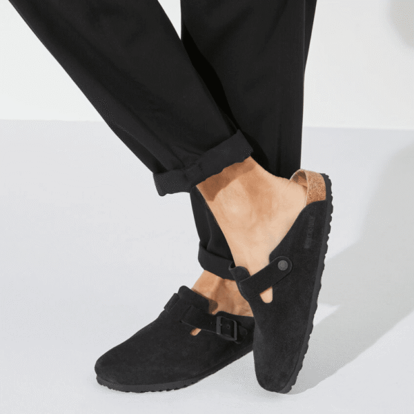 Birkenstock Boston Black הוא דגם סנדלים קלאסי ויוקרתי מבית Birkenstock, המשלב את העיצוב הייחודי של המותג עם נוחות בלתי מתפשרת. הסנדלים מגיעים בצבע שחור שלם, מה שמעניק להם מראה אלגנטי וקל לשילוב עם כל לוק. הדגם הפופולרי הזה מציע שילוב של נוחות, עמידות וסטייל פשוט ונקי, תוך שמירה על המראה הקלאסי של Birkenstock.