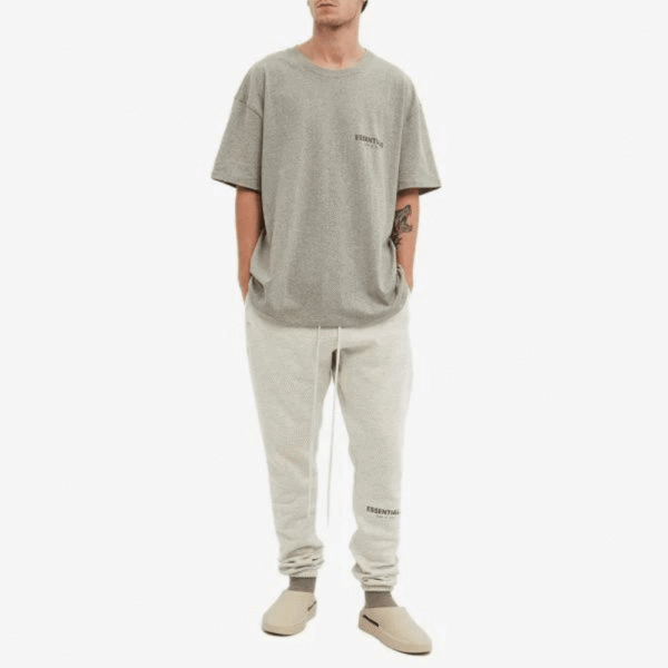 העיצוב הכללי של המכנסיים מינימליסטי, עם דגש על פשטות וסגנון, והם כוללים את הלוגו הקטן של Essentials על אחד מכיסי הצד, מה שמדגיש את המראה המודרני והיוקרתי של המותג.