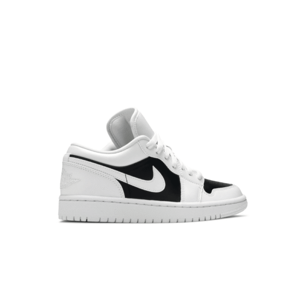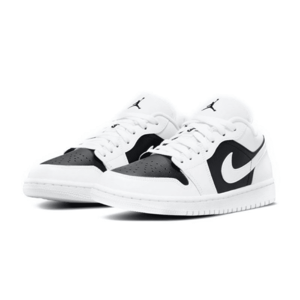 - עיצוב קלאסי בסגנון Air Jordan 1 Low עם שילוב צבעים שחור ולבן
