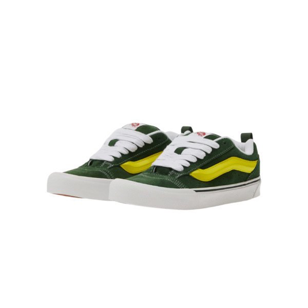 נעלי ה־Vans Knu Skool Green & Yellow משלבות את העיצוב הקלאסי של Vans עם נוחות יומיומית וצבעוניות ייחודית שמבליטה כל לוק. הדגם מגיע בגוון ירוק עם פרטים צהובים, המעניקים לנעל מראה צעיר, רענן ואופנתי שמתאים לשימוש יומיומי או לסגנון סטריט מודרני.